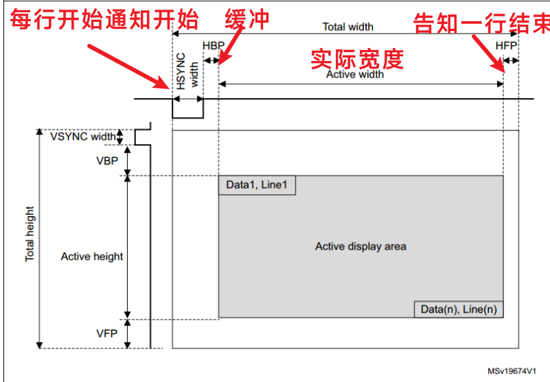 垂直消隐就是 LCD 扫描最后一行结束到第一行开始的时间,这段消失的时间就是垂直消隐,即 VSYNC宽度+ VBP + VFP 这段消失的时间。